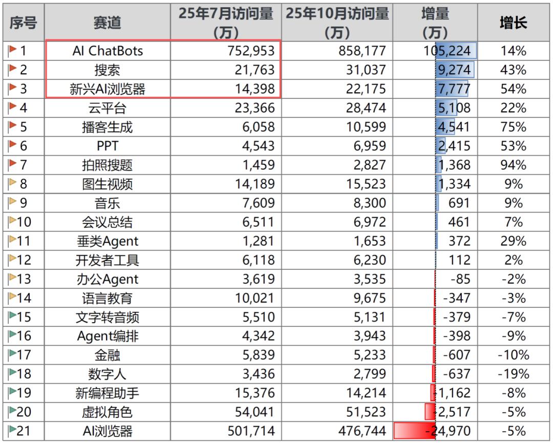 而25年一个很大的变化是,Gemini+Nano Banana在快速追赶,已经开始威胁ChatGPT在AI对话上的竞争力。
