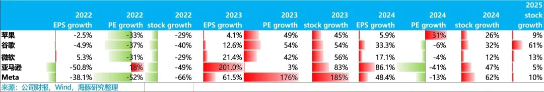 而回溯过往,当2022年美股巨头们收入增长放缓的同时,利润率转而又下滑,导致EPS呈现双重压力时,巨头普遍会经历惨烈的杀估值行情。