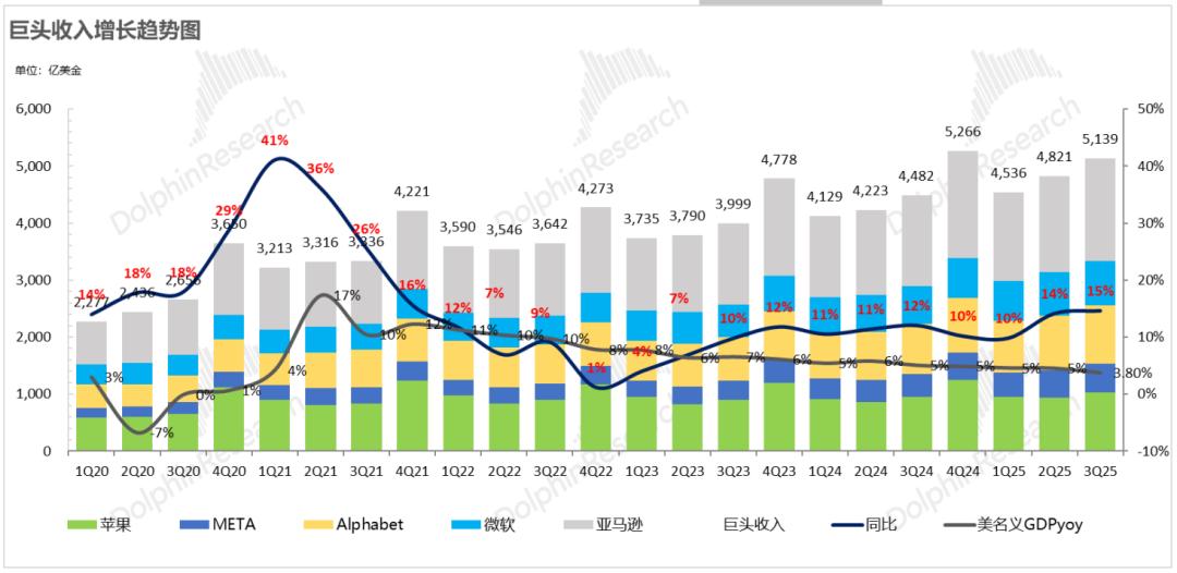 26年看起来多数巨头都会处在收入增长停滞而投入加剧的收支错配期。因此,站在高估值的2025年末去展望2026年,美股巨头们接下来AI资本开支高增、摊销折旧支出在报表端明显呈现、同时AI抢人战下研发支出“通胀”,而AI的回报(体现在增收或者降本裁员),无法有效去稀释掉这些新增的开支的时候,美股部分巨头恐怕就会遭遇杀估值,即使不杀估值,恐怕也很难跑出超额收益。
