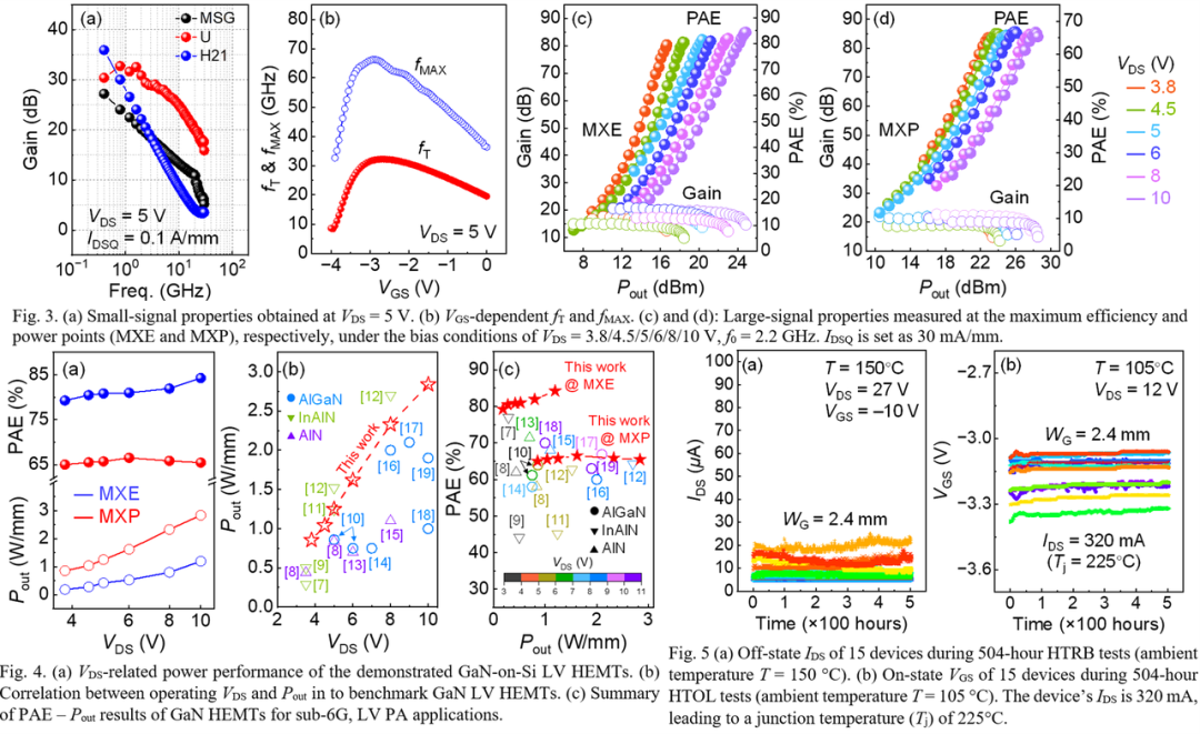 在模组集成层面,通过多芯片协同设计与封装技术,实现了 GaN HEMT 工艺的功放芯片与 Si CMOS 工艺的电源管理芯片在模组内进行高密度封装集成。最终,该器件在手机射频前端系统中完成了关键性能指标的全面验证,为低压氮化镓技术在下一代移动通信终端中的应用提供重要参考。