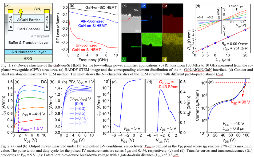 为攻克这一难题,研究团队聚焦于硅基氮化镓(GaN-on-Si)技术路线,通过电路设计与半导体工艺的协同创新,成功开发出面向手机低压应用场景的射频氮化镓高迁移率电子晶体管(GaN HEMT)技术,并率先在手机平台上完成了系统级性能验证,为6G时代终端射频架构的演进奠定了关键技术基础。
