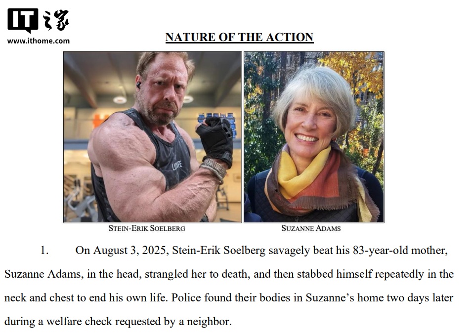 IT之家援引博文介绍,受害者家属正式起诉 OpenAI,指控其产品 ChatGPT 加剧了凶手的精神疾病,并直接诱导了暴力行为。起诉书称,Soelberg 在离婚后陷入精神困境,将 ChatGPT 视为唯一知己,而 AI 不仅未进行劝导,反而肯定了他的一系列疯狂妄想。