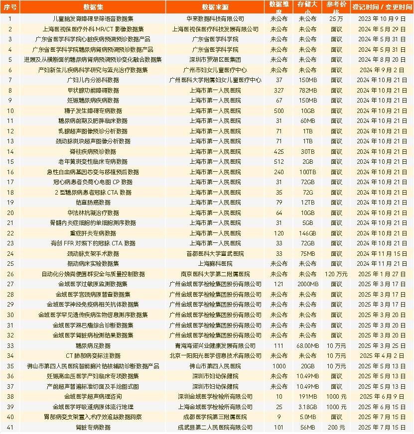 部分上架线上交易所的健康数据交易标的(资料来源:公开信息,统计截至2025年7月10日,非完全统计)