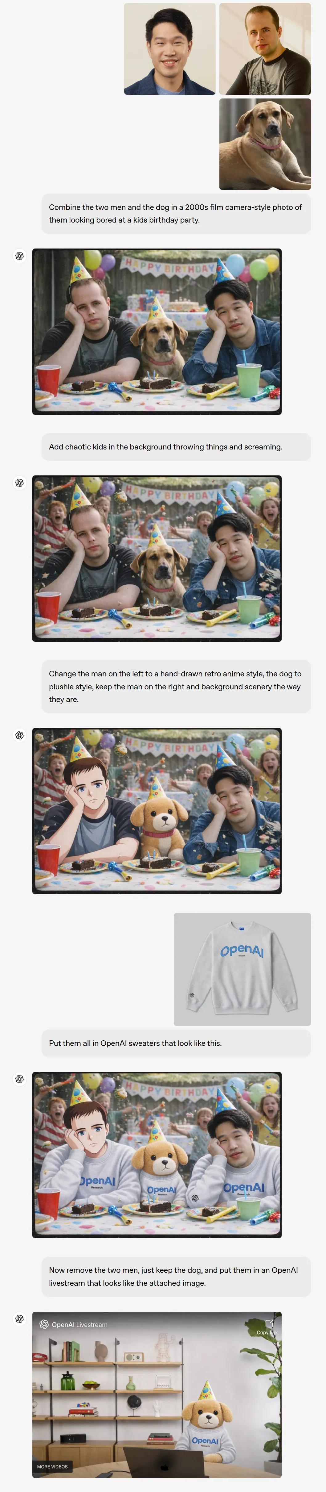 而且以身入局的 OpenAI 大佬还不止他一个。OpenAI 首席研究官 Mark Chen 和 OpenAI 总裁 Greg Brockman 都贡献了自己的照片。比如下面即是其官方博客分享的修图对话记录: