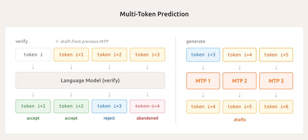 研究人员重新定义了并行解码,以实现极高的输出token吞吐量:通过引入多词元预测(MTP)训练,提升了基础模型的能力,并在推理过程中并行验证了MTP。