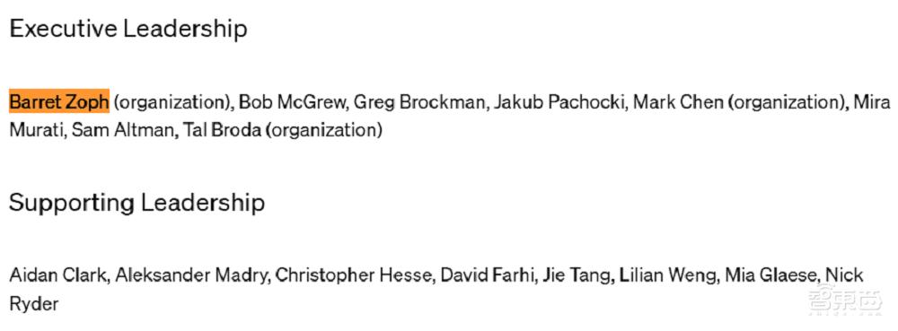 ▲佐夫在OpenAI o1模型博客中被列为行政领导层成员(图源:OpenAI)