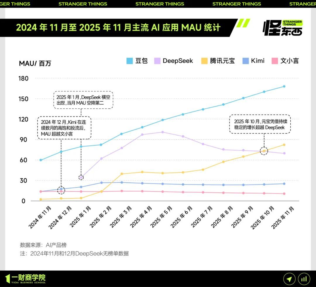 2025年中旬,元宝的高增速未能持续,一度出现放缓。在基模能力有明显提升后,元宝App的表现也有明显提升。