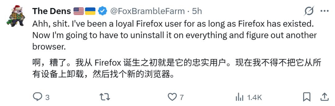 在 Chrome、Edge 拥有更强模型整合能力、更深系统绑定的前提下,Firefox 很难在“AI 能力本身”上占据优势;而一旦它削弱了“克制、透明、去商业化”的传统标签,原本最忠诚的用户群,反而可能率先流失——甚至,从用户们的反馈来看,都不能说是“可能”,而是“肯定”。