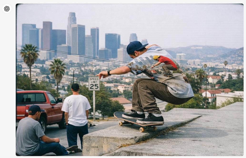 举例而言,以下是ChatGPT新图像模型生成的90年代末的洛杉矶街头摄影(演示版)。