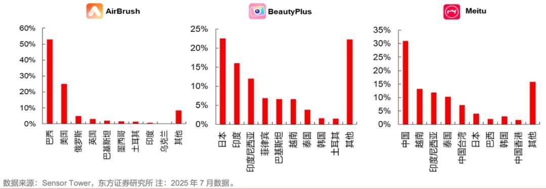 面对割裂的全球审美,针对不同文化圈层进行了差异化定位:AirBrush面向欧美市场,主打“自然感”修图与专业工具属性;BeautyPlus覆盖泛亚太市场,兼容性功能全面,通过“去广告”与高级功能来吸引付费;BeautyCam面向东亚潮流圈,以“原生拍摄”满足用户的社交跟风需求。
