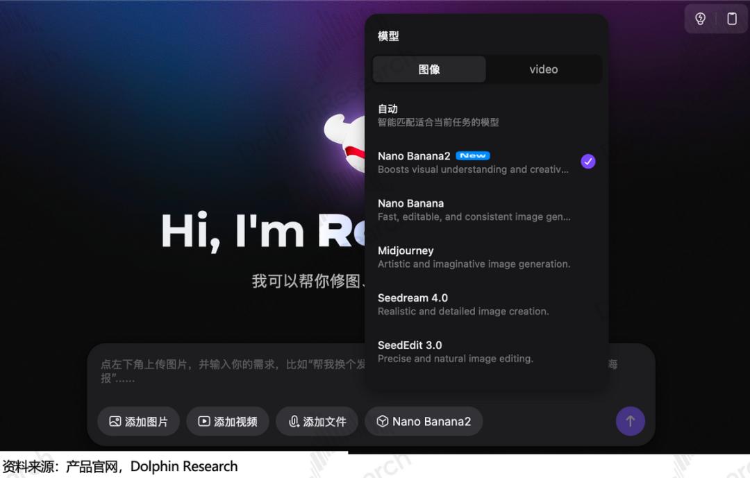 通过标准化接口,RoboNeo 主要集成了 Nano Banana pro等多家第三方基座模型,并接入自研的 Miracle Vision 视觉大模型,整体更像一个图片模型的分发商。