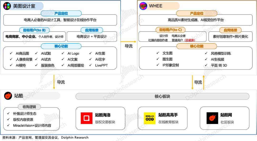 (3)站酷像是“数据库”,作为2024年收购的战略资产,凭借1700万设计师社区为WHEE导入专业用户并形成社区分享(工作流)背书,同时为WHEE创作者提供二次创作素材;依靠站酷海洛超4亿正版素材库未来将作为美图设计室用户的可选增值服务。