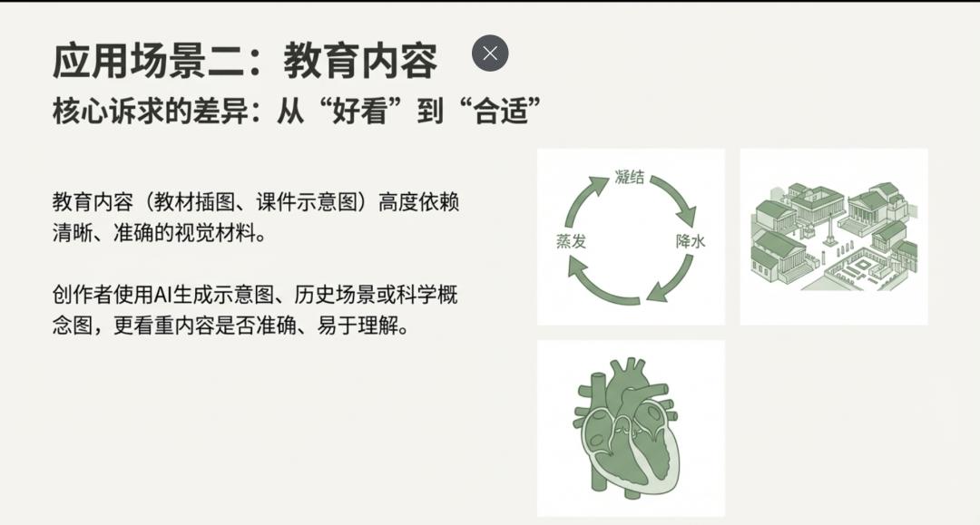 当然,这并不意味着 AI 图像会取代教师或教育内容创作者。相反,图像生产效率的提升,可能让更多精力回到教学设计和内容本身。AI 承担的是工具角色,而不是决策角色。