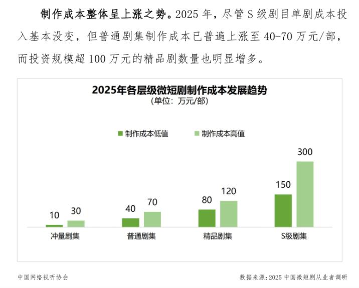 据《21世纪经济报道》报道,2025年,普通短剧制作成本已普遍上涨至40-70万元/部,周深这种咖位的歌星也会为某短剧献唱主题曲,头部短剧已经在规格上越来越接近优质长剧了。