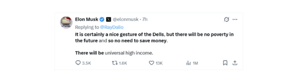 快科技12月18日消息,科创板日报报道,埃隆·马斯克在回复桥水基金创始人雷·达里奥的发言时再次阐述其观点:在人工智能与机器人技术推动下,未来社会或将进入“全民高收入”阶段,届时储蓄将不再具有必要性。