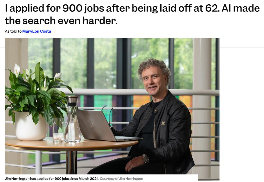 一位62岁的英国老人,在2024年被裁员后,疯狂申请了900份工作,终于在12月重新上岸了。AI,让他的求职过程更加困难。