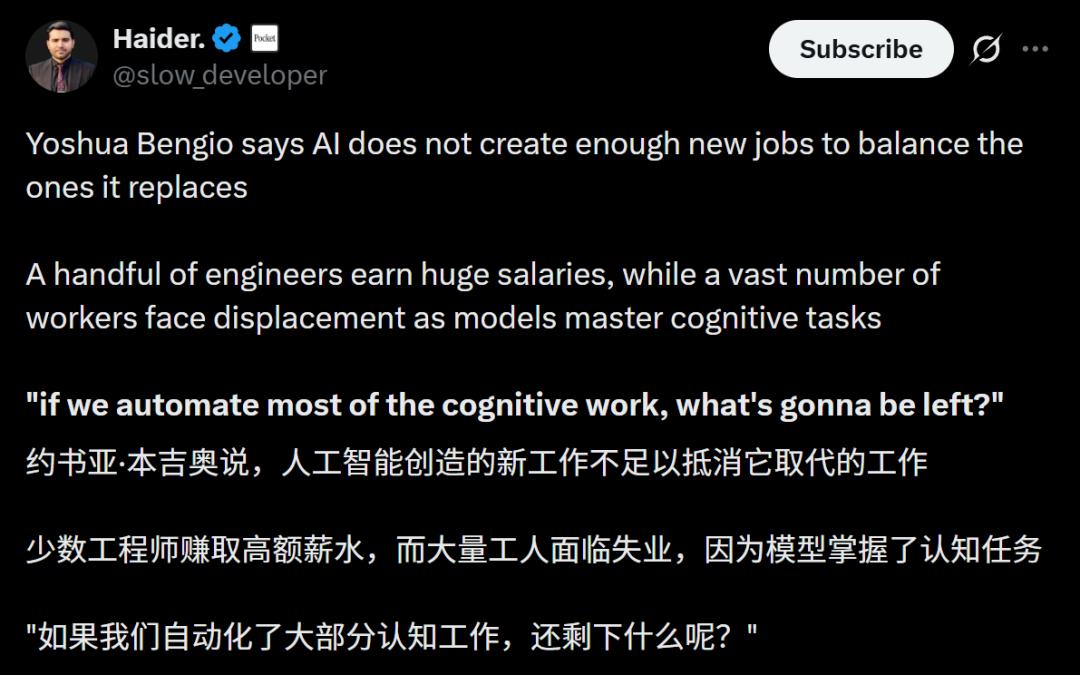 最近,图灵三巨头之一的Yoshua Bengio就忧心忡忡地预言:AI创作的新工作,不足以抵消它取代的工作。