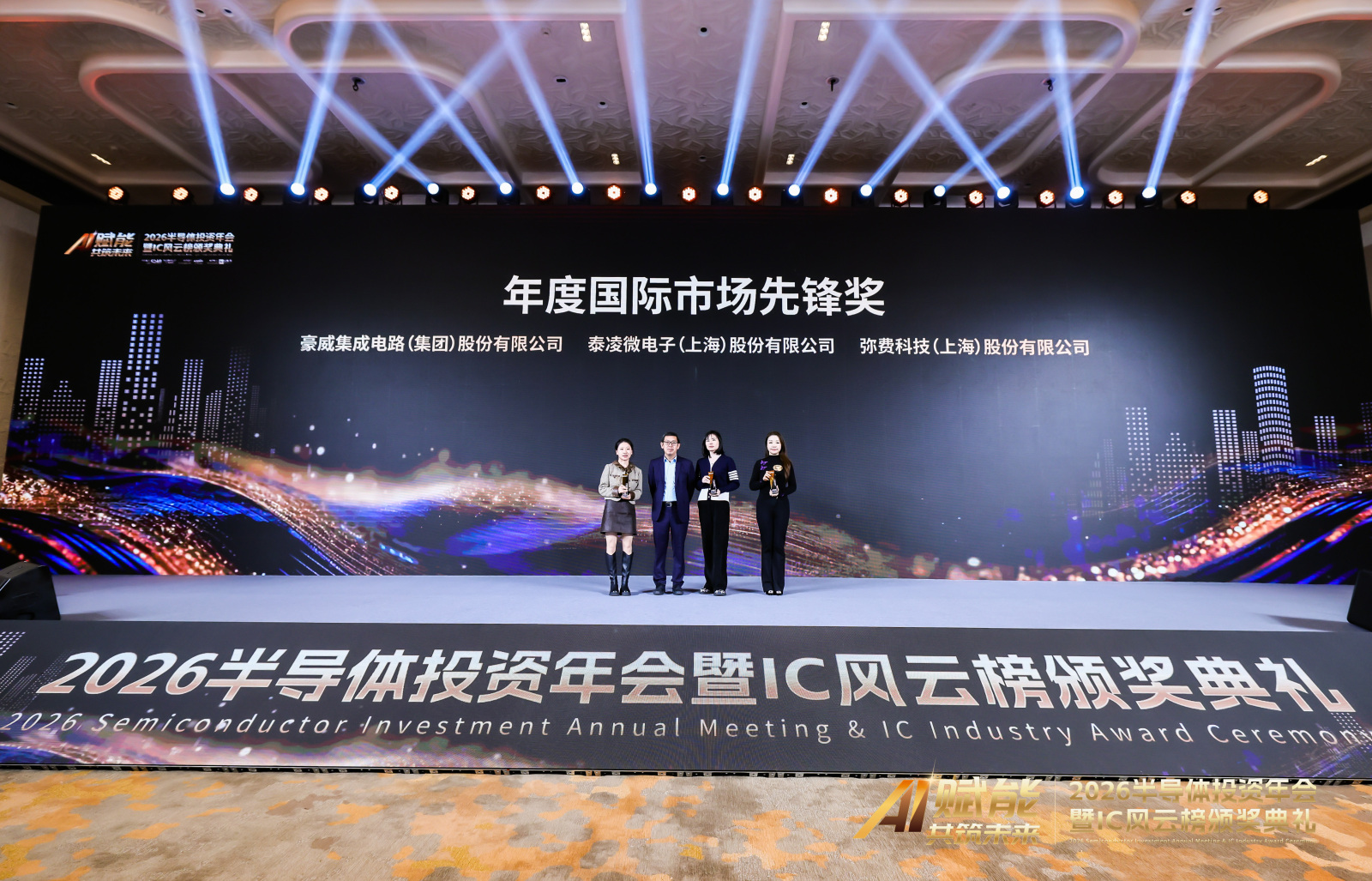 2025年12月20日,由半导体投资联盟和集成电路投资创新联盟主办、ICT知识产权发展联盟协办、爱集微承办的“2026半导体投资年会暨IC风云榜颁奖典礼”在上海前滩华尔道夫酒店成功举办。豪威集成电路(集团)股份有限公司(简称:豪威集团)荣获“年度半导体上市公司领航奖(CIS传感器)”“年度国际市场先锋奖”两项年度大奖。