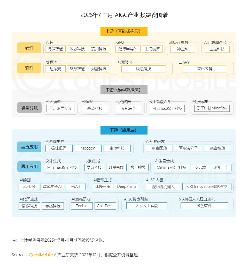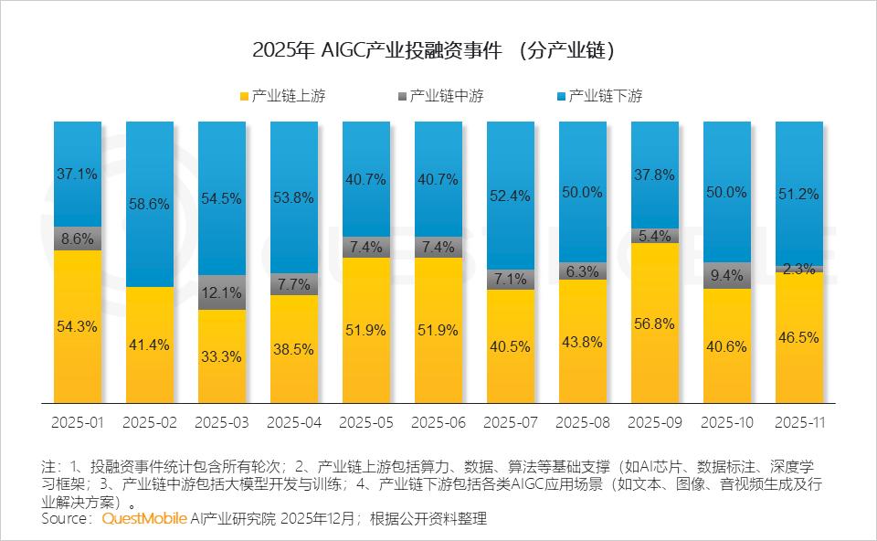 据公开资料显示,2025年7月-11月AIGC产业共完成186起投融资,金额达336.7亿元,较上半年增加20.8%。
