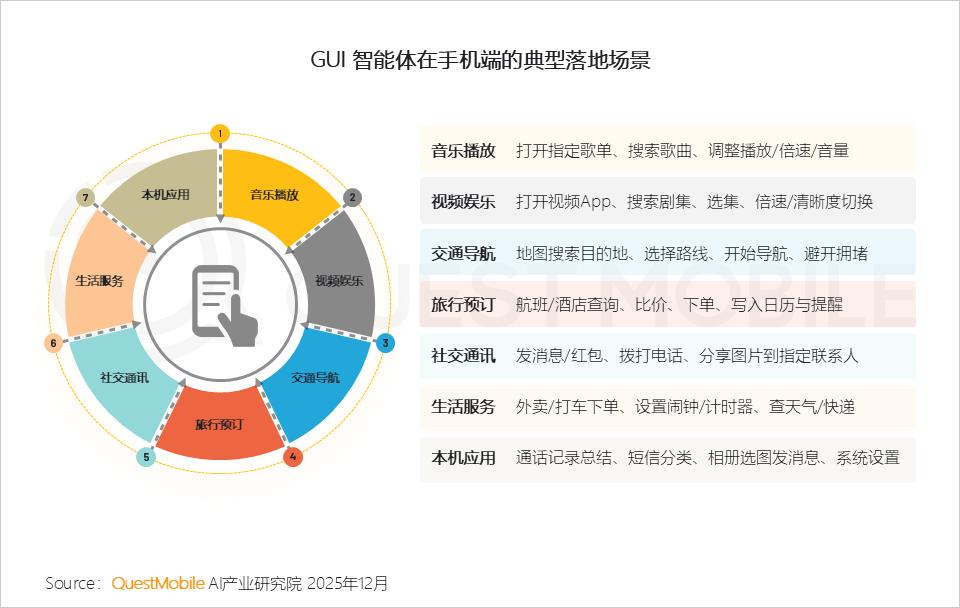 2、 GUI智能体负责“落地执行”,与手机AI助手、工具类AI应用,共同实现从“用户说需求”到“手机自动完成任务”的完整链路