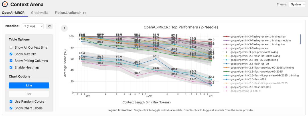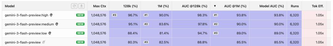 而且最近有人发现,在长下文测试中,Gemini 3 Flash更是遥遥领先!