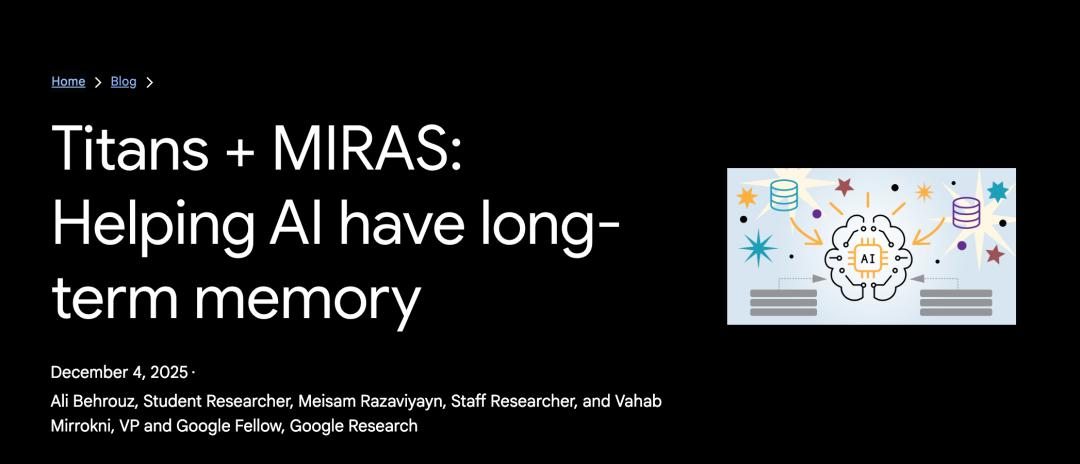 在这两篇新论文《Titans》和《MIRAS》中,谷歌提出了一种架构和理论蓝图,结合了RNN的速度与变换器精度。