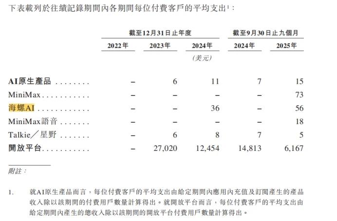 Minimax用户的付费意愿并不高,作为主要收入来源的应用——Talkie/星野的整体用户付费率仅1.4%,大部分用户仍是免费使用。从招股书可以看到,星野及海外版Talkie用户在2023年至2025年前九个月各个期间的“客单价”分别是6美元、8美元、5美元,大约只相当于在美国喝三四杯蜜雪冰城柠檬水的花费。
