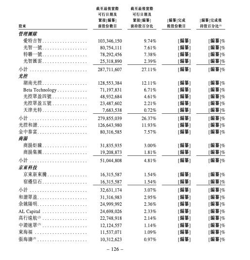 IPO前,光大控股旗下湖南光控持股12.11%、BetaTechnology持股6.71%、光控众盈四号持股4.61%、光控众盈五号持股2.21%、天津光特持股0.72%,合计持股26.37%,仅次于特斯联管理团队。