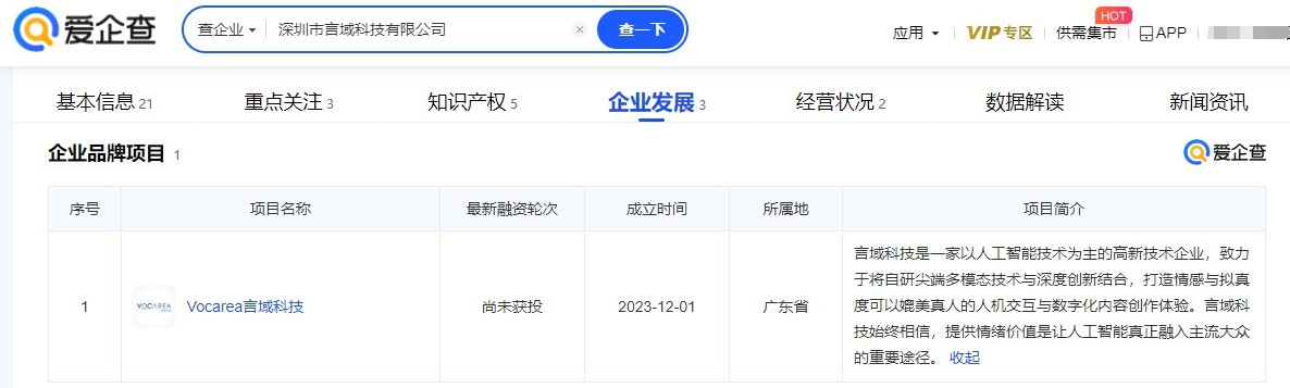 企业品牌项目信息显示,言域科技是一家以人工智能技术为主的高新技术企业,致力于将自研尖端多模态技术与深度创新结合,打造情感与拟真度可以媲美真人的人机交互与数字化内容创作体验。截至目前,该公司暂无投融资信息。
