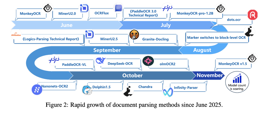 图注:2025年6月起,十余款多模态文档解析模型先后发布