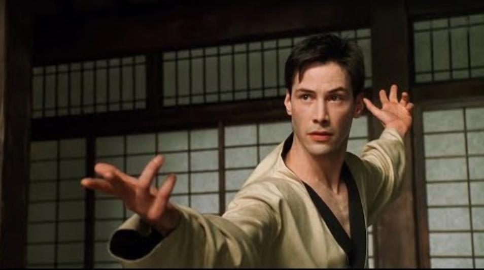 在电影《黑客帝国》中,尼奥在虚拟世界中学习功夫。