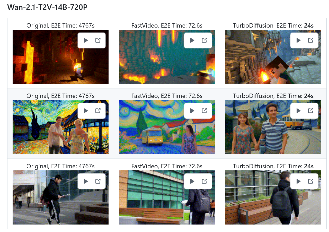 IT之家 12 月 25 日消息,清华大学 TSAIL 实验室联合生数科技推出开源视频生成加速框架 TurboDiffusion,该框架能在保持视频质量的前提下,将端到端扩散生成的推理速度提升 100 至 200 倍。