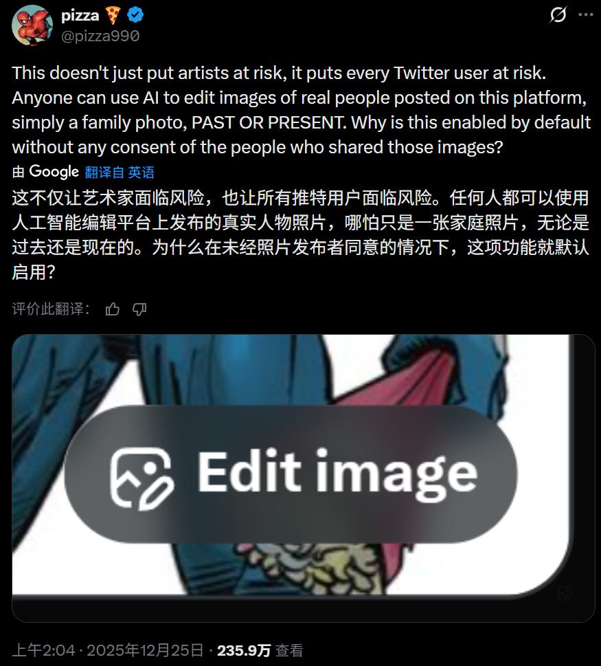 有人建议在 X 设置区的隐私选项里关闭 AI 权限,但这些建议都没有明确提及 AI 图像编辑。Grok 官方也表示,目前没有办法禁用这项新功能。