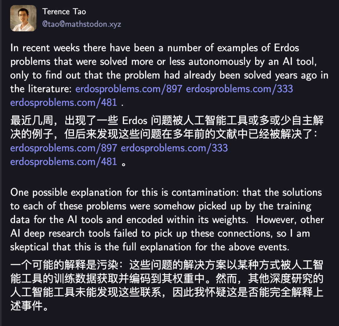 陶哲轩在Mastodon上对此事发表了看法。