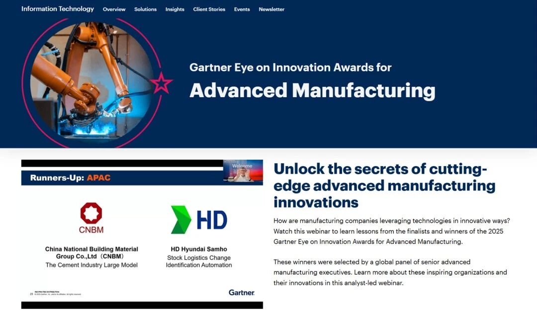 中国建材集团荣获Gartner 2025年度“创新之眼”评选先进制造赛道亚军亚军(Runners-Up)