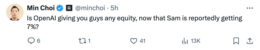 说到底,大家对追忆往事似乎并不关心,最要紧的问题还是:传说中的股权,是只有山姆・奥特曼有,还是大家伙都有份?