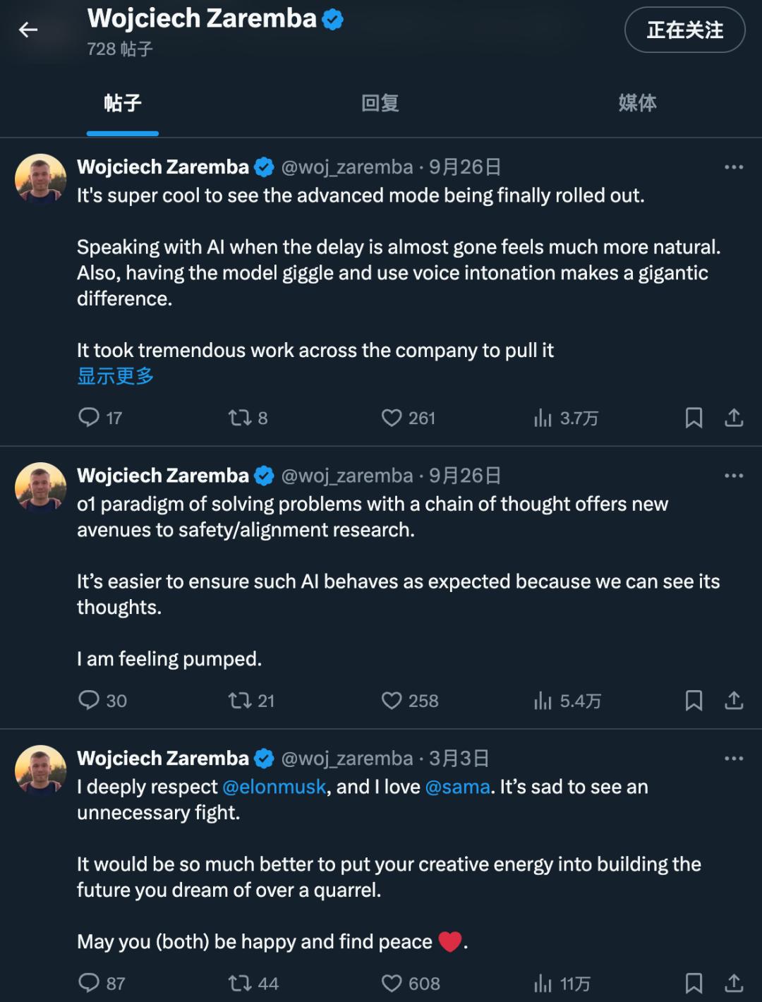 此时,除了大权在握的山姆・奥特曼,OpenAI 11 人联合创始团队中还剩下一位:语言与代码生成团队负责人 Wojciech Zaremba。
