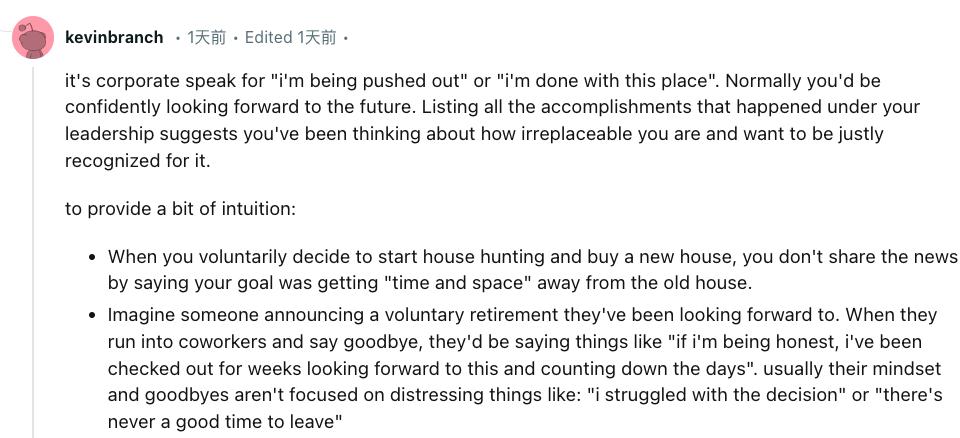 现在, Murati 的退出似乎直刺山姆・奥特曼管理上的问题,有网友 Murati 的离职声明进行了文本细读,认为:这是场面话,实际是在说:「我被排挤了」或者「我受够了这个地方」。如果不是被迫离职,一般情况下,你会满怀信心地展望未来,列出以往取得的所有成就,而不是像 Murati 这样,对自己的贡献只字不提。