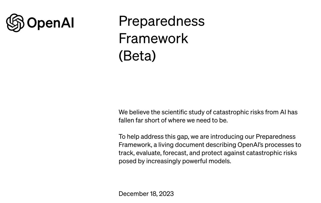 而超级对齐团队解散后不久,为了应对公众对OpenAI安全问题的担忧,OpenAI开始着手组建Preparedness团队(也就是最新提到的这个团队)——