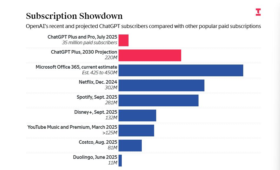 然而,截至2025年10月,仅有约5%的周活跃用户为付费用户,每月贡献20美元或200美元的订阅服务付费,绝大多数用户并未贡献直接收入。