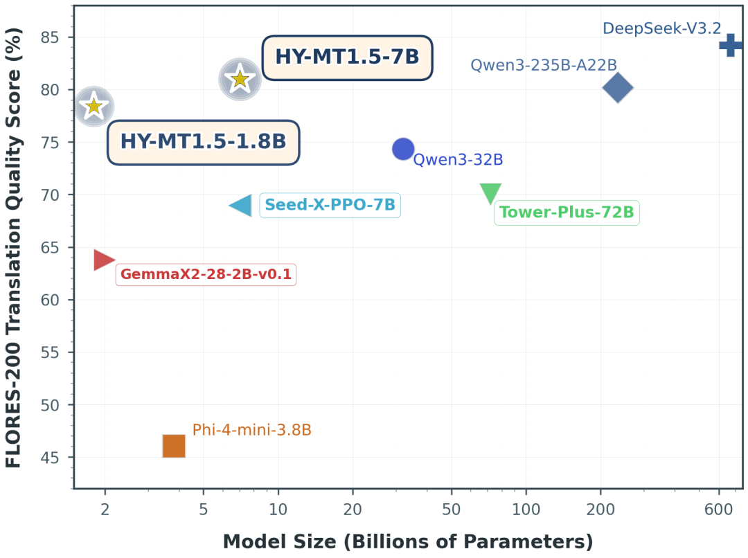 IT之家 12 月 30 日消息,腾讯混元今日宣布开源翻译模型 1.5 版本,共包含两个模型:Tencent-HY-MT1.5-1.8B 和 Tencent-HY-MT1.5-7B,支持 33 个语种互译以及 5 种民汉 / 方言,除了中文、英语、日语等常见语种,也包含捷克语、马拉地语、爱沙尼亚语、冰岛语等小语种。