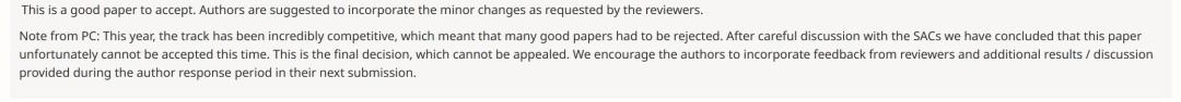 作为一名作者和评审员,我能理解这种做法有多令人沮丧。作为一名区域主席,我也经历过管理那些勉强达到录用分数的论文的压力,特别是当项目委员会要求更严格的录用率时。