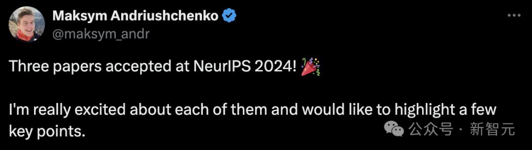 来自洛桑联邦理工学院(EPFL)的博士Maksym Andriushchenko称,自己有3篇论文被NeurIPS 2024接收。