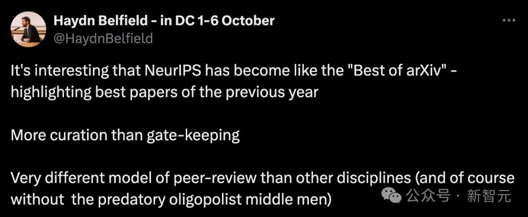 有趣的是,NeurIPS已经变得像「arXiv精选」——突出展示前一年的最佳论文。