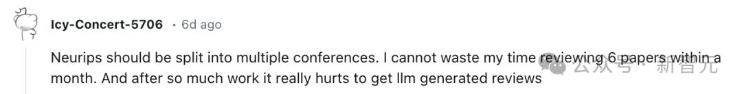 Reddit网友评论道,自己用一个月的时间审核6篇论文,当看到自己得到的是LLM的评价,真的很受伤。