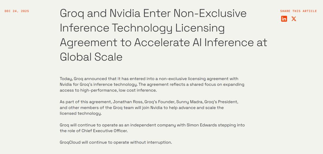 Groq的创始人兼CEO Jonathan Ross(谷歌前TPU首席设计师)、总裁等核心团队将整体加入英伟达,而且约90%的Groq员工也随之转入英伟达。