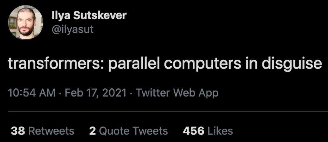 因为Transformer也是一台并行计算机。这里我引用一下Ilya Sutskever的一句话: