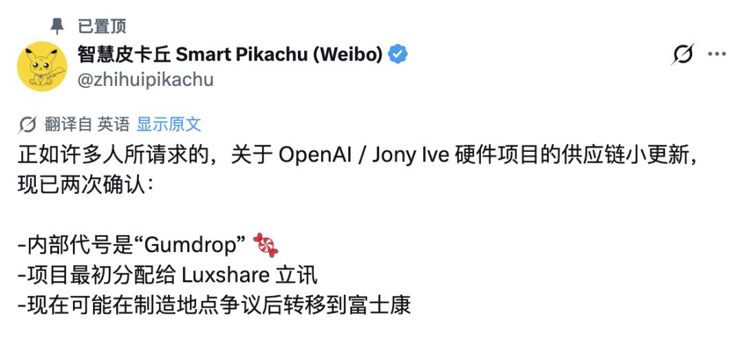 当网友追问是否为「Pin」时,博主特意澄清:是 pen(笔)。他还透露,该项目最初计划由立讯精密代工,后因产地选址问题产生分歧,目前大概率将转由富士康承接。