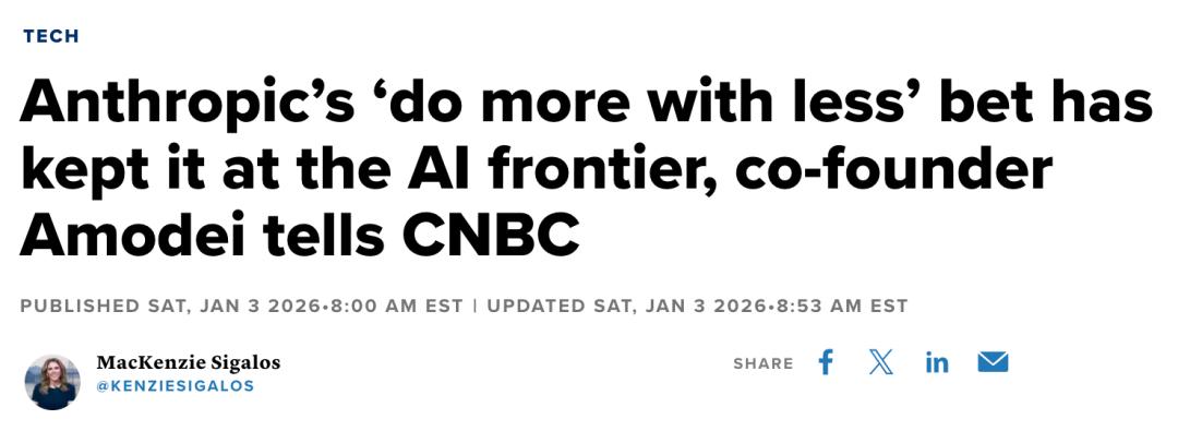 一直以来,Anthropic都在押注用最少的资源,做更多的事,才不会掉队,始终跑在AI最前沿。