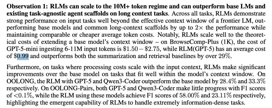而RLM(GPT-5)的平均成本只有0.99美元。